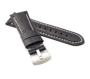 Firenze Alligator embossed Leather Watch Strap for Tang - BLACK / BLACK